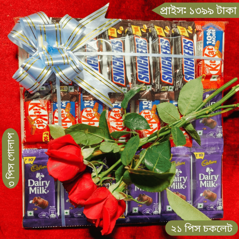 17 Piece Chocolate Combo with 3 Fabric Roses- ১ ৭ পিস চকলেট বুন্ডেল সাথে 3টি ফ্যাব্রিক রোজ