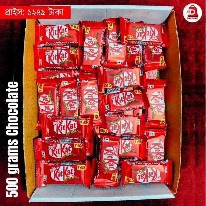 Celebrate joy with the ultimate 500g KitKat Chocolate Box – a must-have treat for weddings, birthdays, Eid, and corporate events across Bangladesh! Packed with 39+ pieces of iconic KitKat milk chocolate, this 1249 BDT chocolate hamper delivers crispy wafer layers and smooth, creamy chocolate in every bite. Perfect for bulk gifting, this value-packed 500g box is ideal for wedding receptions, office parties, and family gatherings where KitKat is the crowd favorite. Whether you’re a wholesale buyer or planning a festive celebration, this single-variety chocolate box ensures maximum satisfaction at an unbeatable price. No compromises on quality – just pure KitKat bliss at 1249 BDT! Perfect for Bangladesh customers seeking affordable luxury in chocolate gifts. Order now and make your event sweeter with 500g of iconic KitKat!